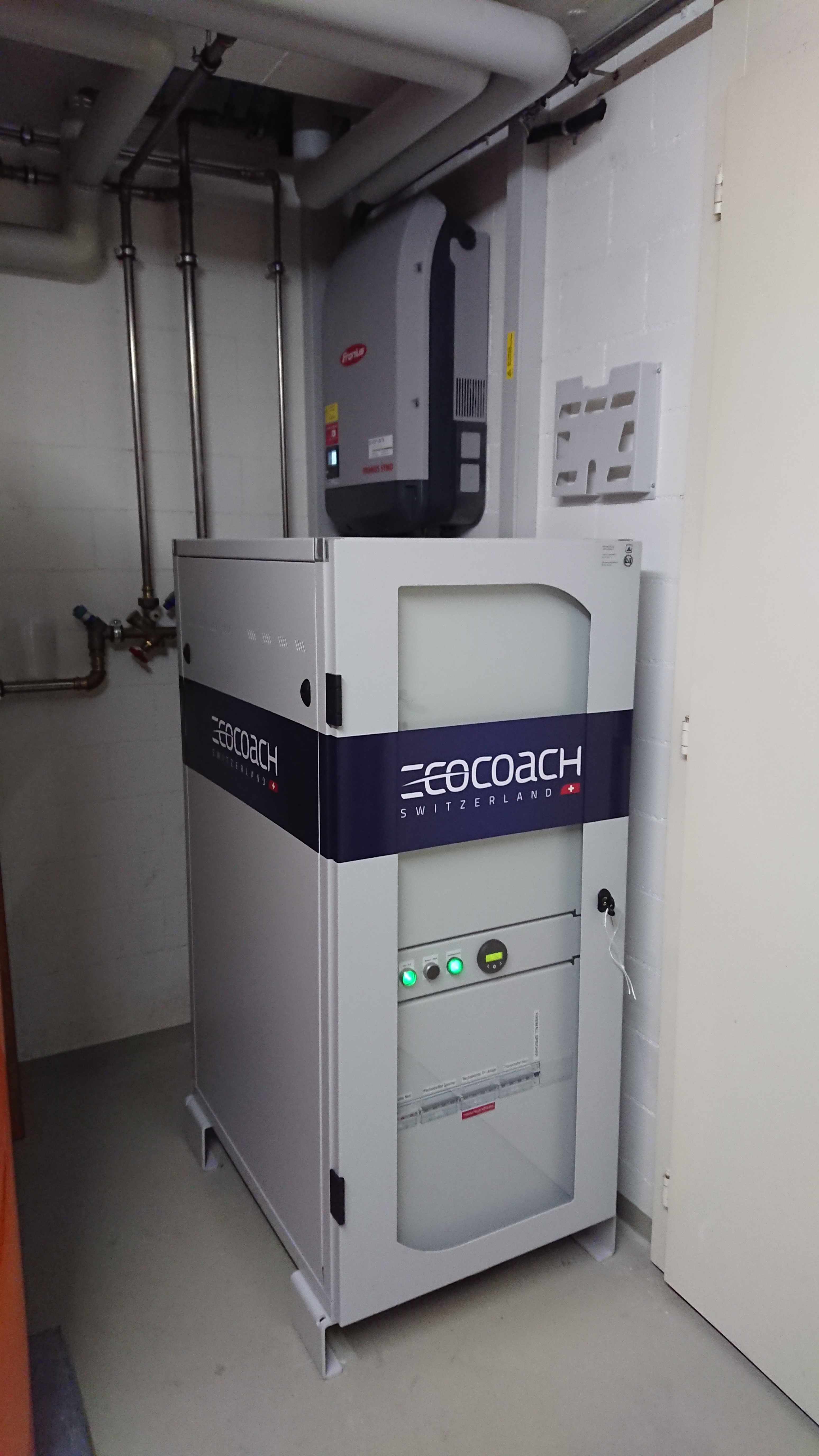 Die überschüssige Energie kann in einer Batterie gespeichert werden, um nach Sonnenuntergang und am anderen Morgen wieder zur Verfügung zu stehen. Diese Batterien bestehen heute meistens auf Lithium-Eisenphosphat und sind in ihrer Kapazität skalierbar. Die Auslegung eines Energiespeichers erfolgt vorzugsweise nach einer eingehenden Bedarfsermittlung. Als Faustregel gilt das ein bis eineinhalbfache der PV-Leistung.